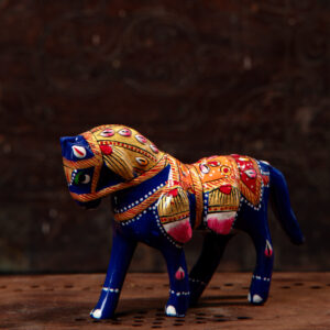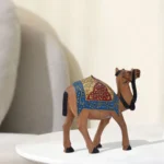 Celebrate the desert spirit of Rajasthan with this beautifully hand‑painted wooden camel. Crafted by skilled artisans, the figurine is carved from wood, showing a smooth, polished finish with a natural warm brown base tone. Intricate Meenakari detailing that highlights India’s rich decorative traditions. The camel, a symbol of endurance and cultural pride, adds warmth, heritage, and artistic charm to any space.